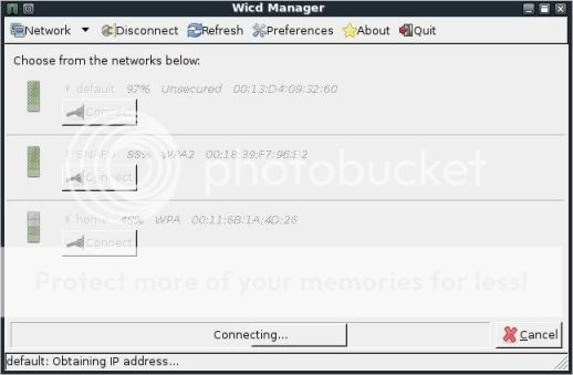 So if trying to connect with the connection manager WICD for instance, it will fail when trying to obtain the IP address.